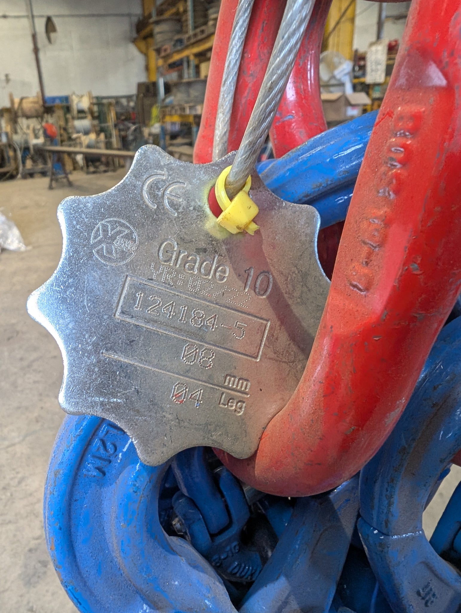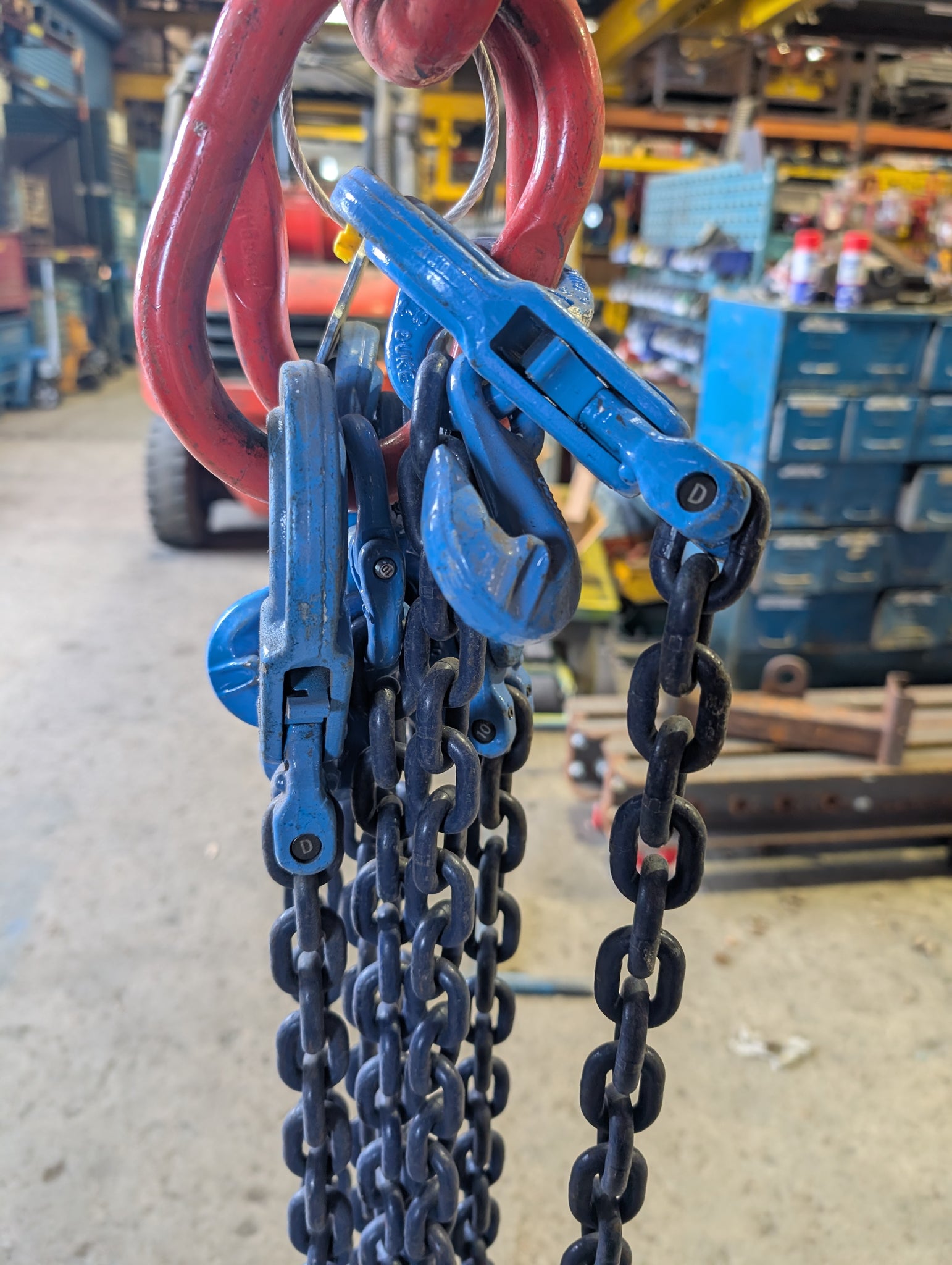 Grade 10 Lifting Chain Sling 8mm 4 Leg 3m Self Locking Hook With Grabs *Ex Hire*